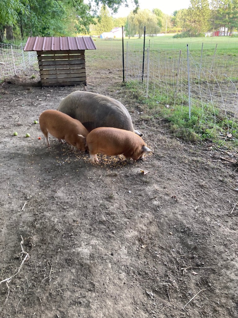 We have been breeding and saving 2 piglets from each farrowing to grow out for our freezer. We have also added one new sow and hopefully she will provide more litters.